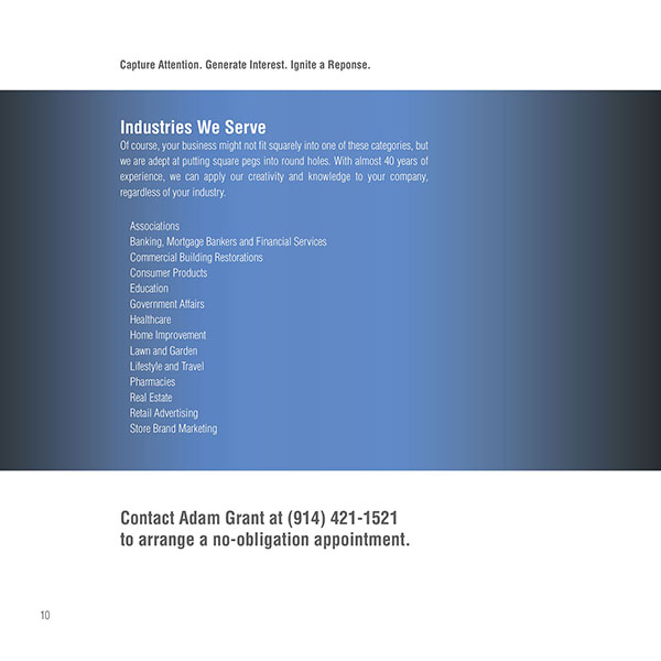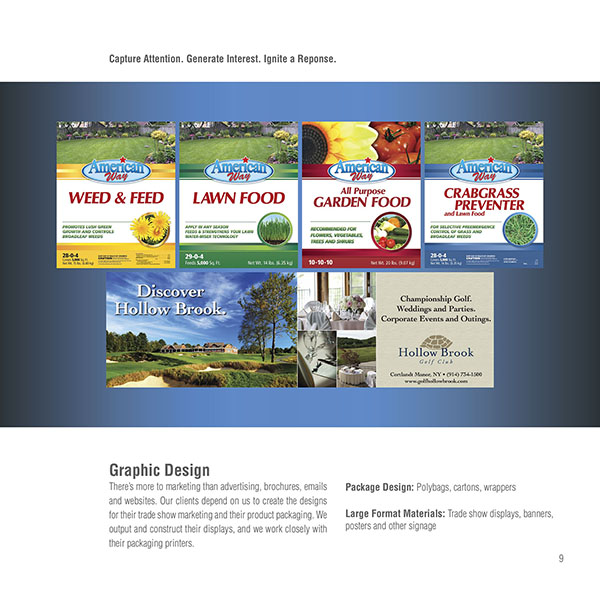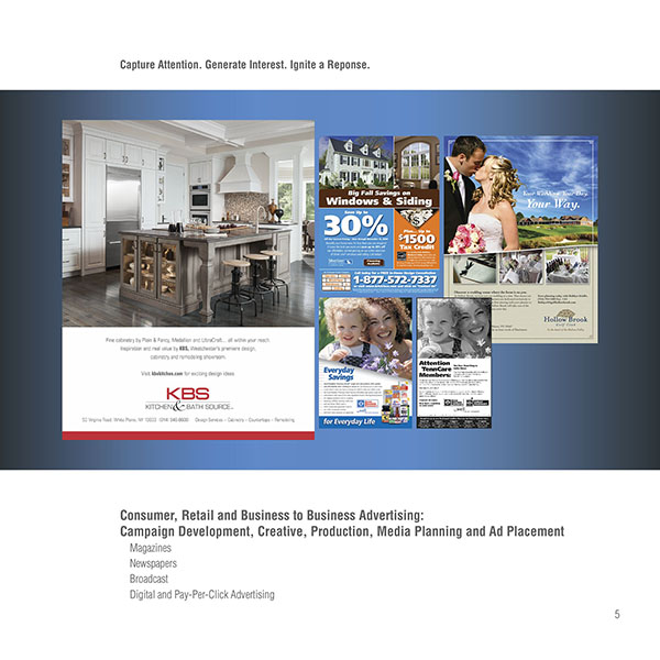 Copy. Art. Design. Photography. Illustration. Layout and production… All are produced with impeccable taste and attention to detail. You can depend on us to respond quickly to your communications needs in a wide variety of media.